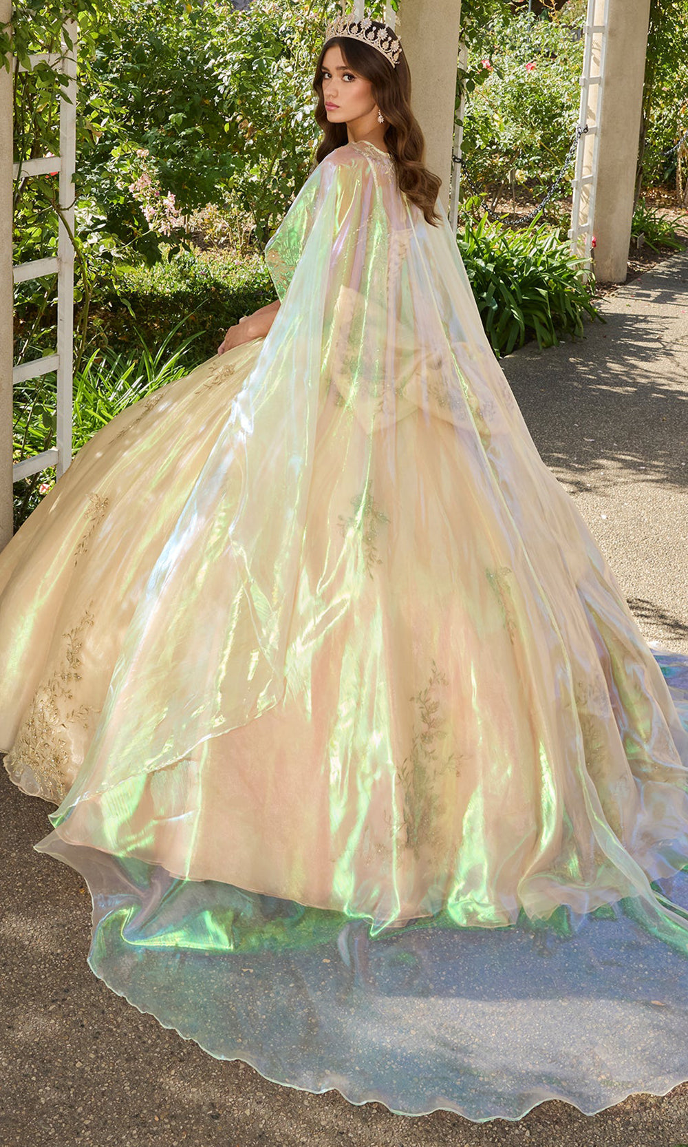 Details: | Spaghetti Straps, Off-Shoulder Crystal Draping, Beaded, Embroidery, Oversized Back Bow, Detachable Sheer Cape |