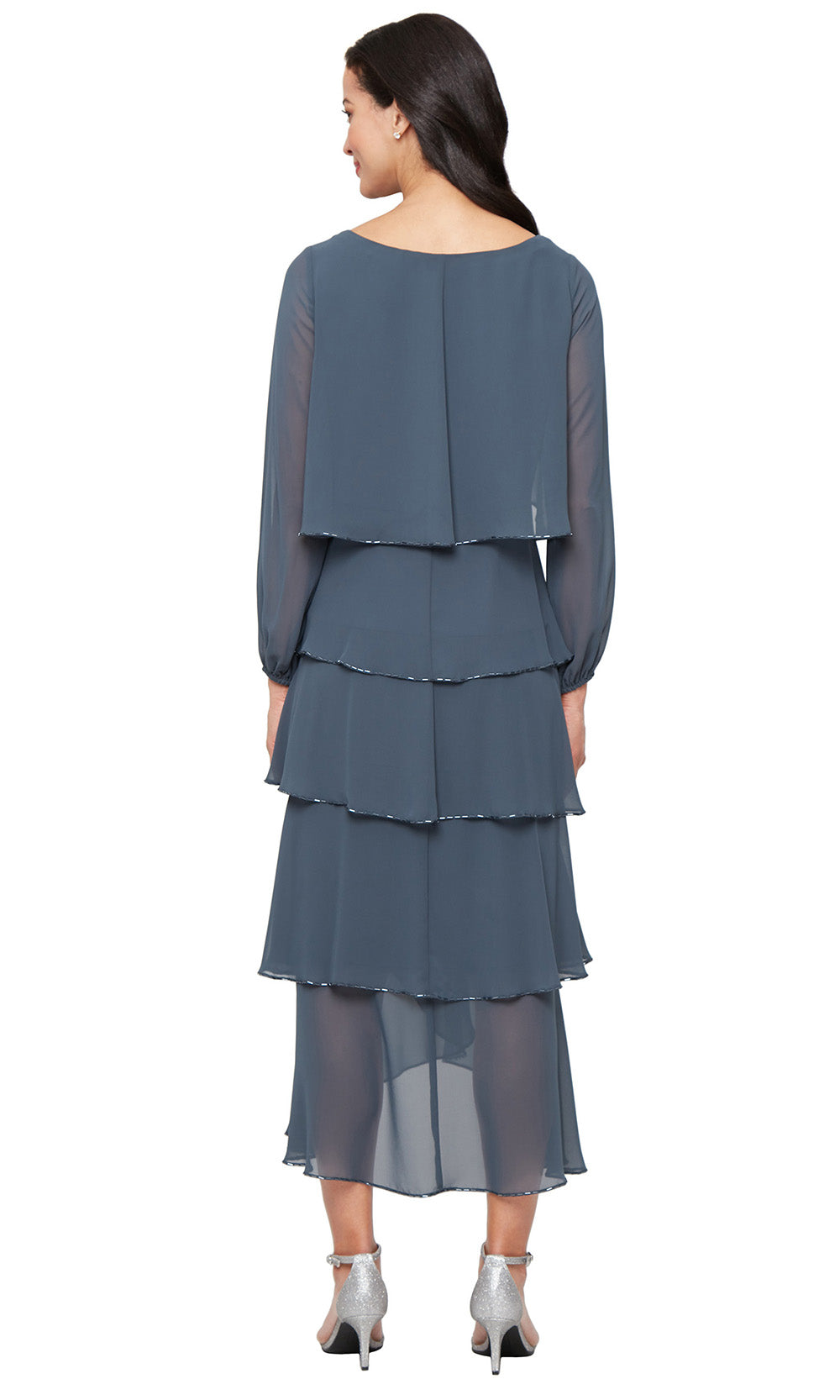 Elegance gets an effortlessly modern twist in S.L. Fashions 9170731. Featuring cascading tiers that create a graceful motion, this dress is accented with shimmering bugle beads trim for a refined touch. The sheer long bishop sleeves add sophistication while keeping the look light and feminine. A scoop neckline and a fluid sheath silhouette ensure all-day comfort and charm. Whether you are attending a daytime event or an evening reception, S.L. Fashions 9170731 offers a chic and contemporary choice with distinctive texture and soft movement. Model is wearing Slate color.